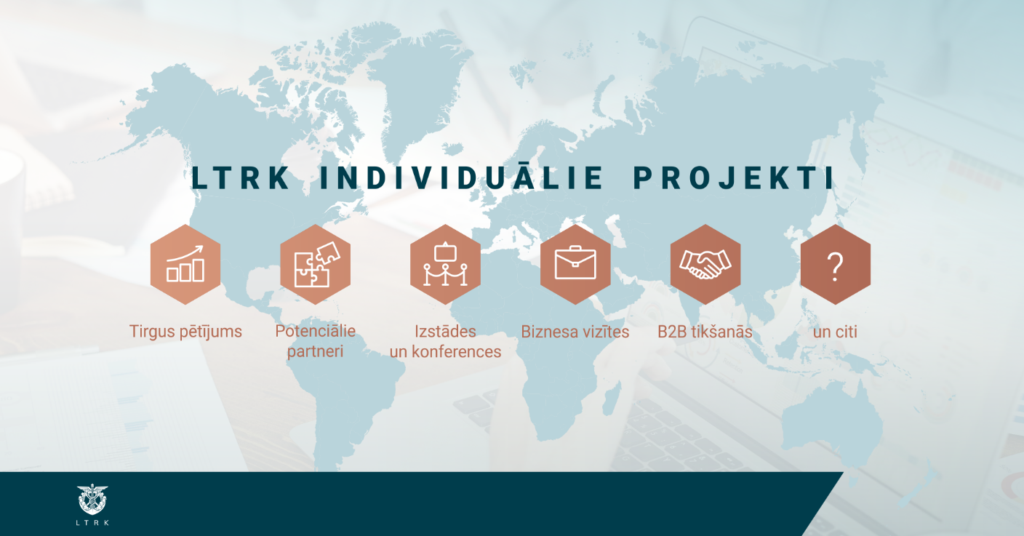 LTRK individuālie eksporta projekti mērķa valstīs ir lieliska iespēja uzņēmumiem veicināt eksporta attīstību un izveidot sadarbību ar ārvalstu partneriem, izmantojot pielāgotu un personalizētu pieeju. Latvijas Tirdzniecības un rūpniecības kamera (LTRK) sadarbībā ar pārstāvjiem ārvalstīs aicina uzņēmumus pieteikties individuāliem projektiem konkrētās mērķa valstīs.