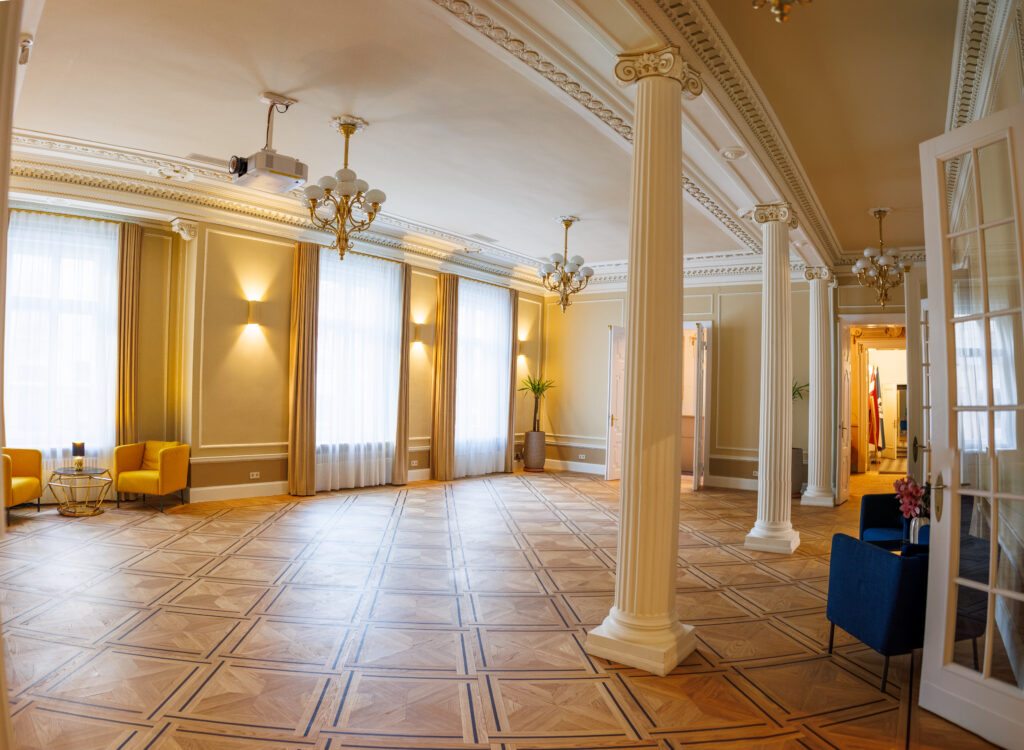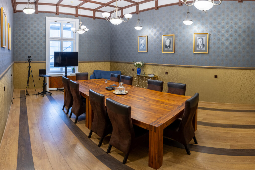 Latvijas Tirdzniecības un rūpniecības kameras Prezidentu zāle ir lieliski piemērota biznesa tikšanās aktivitātēm, tostarp “apaļā galda” diskusijām un citiem pasākumiem, kur nepieciešama profesionāla un privāta vide. Zāles kopējā platība ir 32 kv.m., un tā piedāvā 16 sēdvietas pie galda, padarot to piemērotu mazāka mēroga sanāksmēm, stratēģiskām apspriedēm un citām augsta līmeņa tikšanās reizēm.
