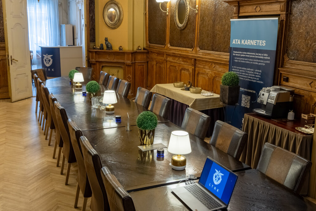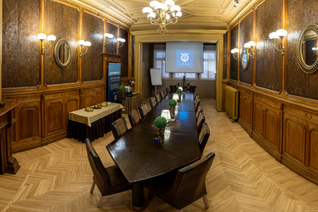 Latvijas Tirdzniecības un rūpniecības kameras (LTRK) Valdes zāle ir lieliski piemērota sanāksmēm, pasākumiem un dažādām biznesa aktivitātēm. Zāles platība ir 40 kv.m., un tajā ir 20 sēdvietas pie galda, nodrošinot ērtu vidi gan mazākām, gan vidēja lieluma sapulcēm. Telpa ir aprīkota ar modernu tehnisko aprīkojumu, kas atvieglo pasākumu organizēšanu gan klātienē, gan hibrīda formātā (klātienē un tiešsaistē).