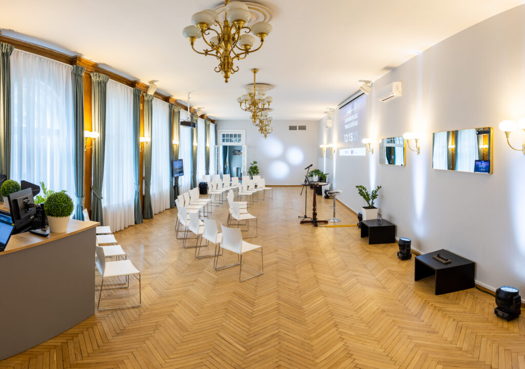 LTRK konferenču zāle ir lieliska vieta vietēja un starptautiska mēroga konferenču, semināru, korporatīvo pasākumu un citu aktivitāšu organizēšanai. Zāle atrodas ēkas pirmajā stāvā, nodrošinot ērtu un privātu piekļuvi ar atsevišķu ieeju. Pasākuma dalībniekiem ir pieejamas bezmaksas stāvvietas, un blakus teritorijā atrodas arī “Europark” maksas stāvvieta, ja nepieciešams papildu autostāvvietas risinājums.